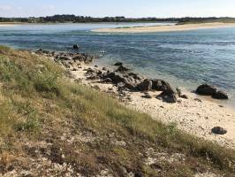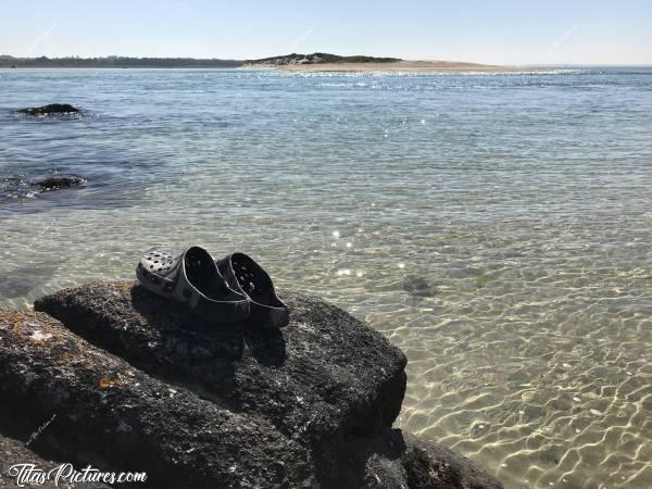 Tita Petit bain de pieds très agréable en ce bel été, à la Baie du Kernic. J’ai posé mes sandales sur le rocher, afin de donner une échelle de grandeur. En face, il s’agit du bout de la dune de Keremma.