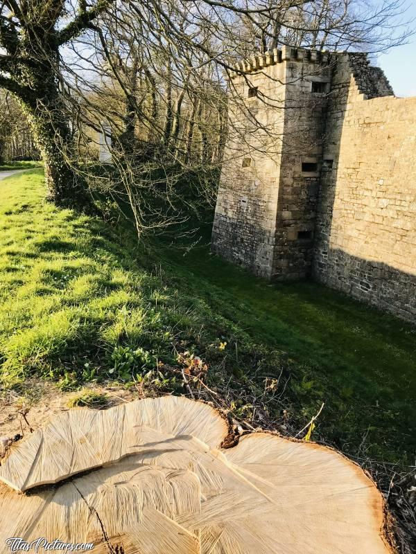 Photo Le Château de Kerjean : Vue sur les Douves du Château de Kerjean bien profondes et bien entretenues 😧😍 En premier plan, la Souche d’un bel Arbre centenaire qu’il a fallu abattre, car il était malade 😢c, Château de Kerjean, Saint Vougay